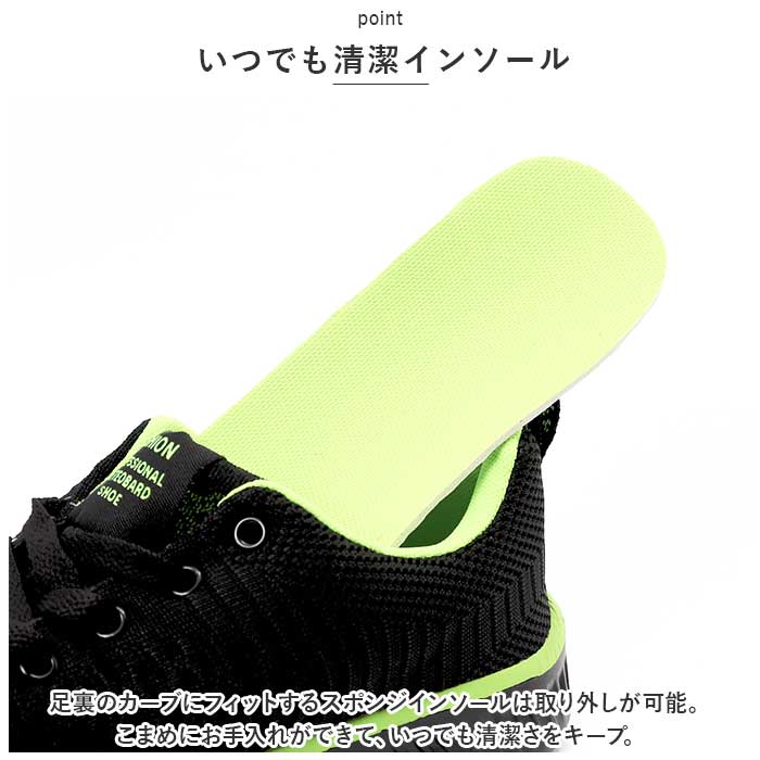・足裏のカーブにフィットするスポンジインソールは取り外しが可能。こまめにお手入れができて、いつでも清潔さをキープ。