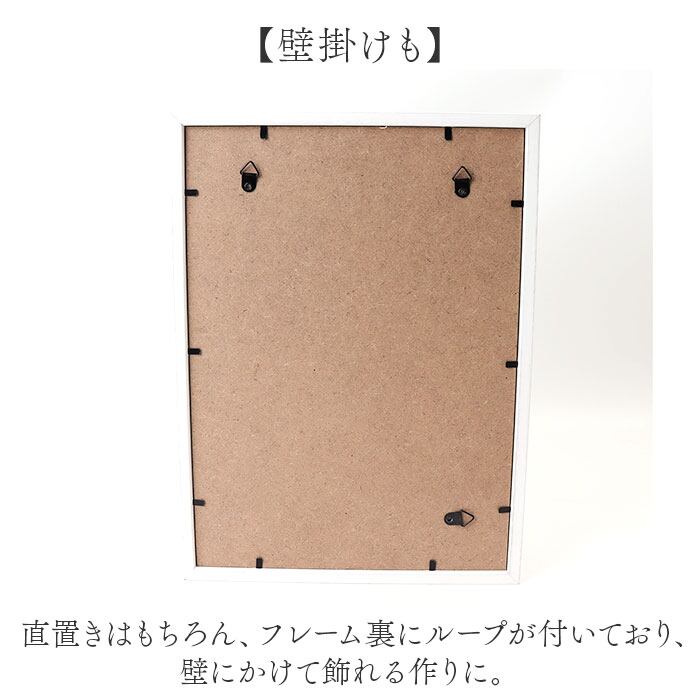 ・直置きはもちろん、フレーム裏にループが付いており、壁にかけて飾れる作りに。