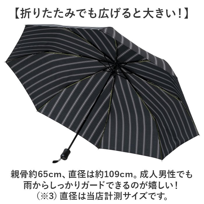 ・親骨約65cm、直径は約109cm。成人男性でも雨からしっかりガードできるのが嬉しい!