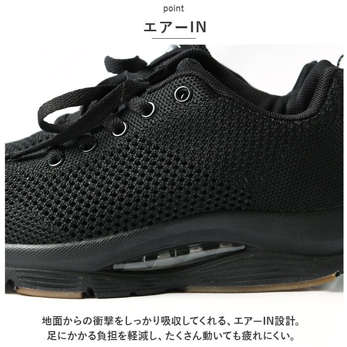 ・地面からの衝撃をしっかり吸収してくれる、エアーIN設計。足にかかる負担を軽減し、たくさん動いても疲れにくい。