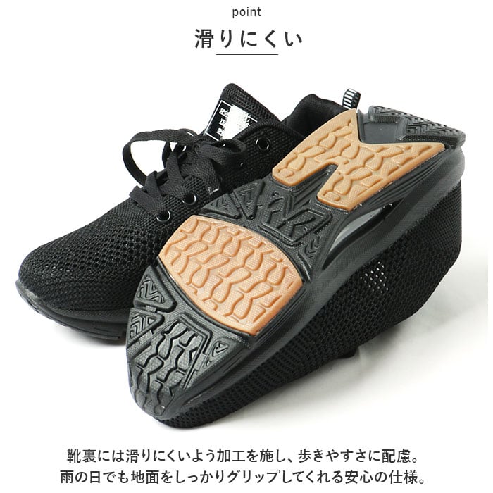 ・靴裏には滑りにくいよう加工を施し、歩きやすさに配慮。雨の日でも地面をしっかりグリップしてくれる安心の仕様。