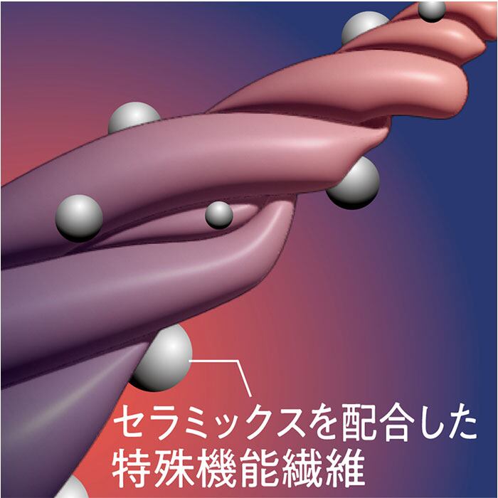 ・セラミックス粉末を独自配合。体温を輻射し、血行促進・疲労回復・筋肉のハリ、コリを緩和。