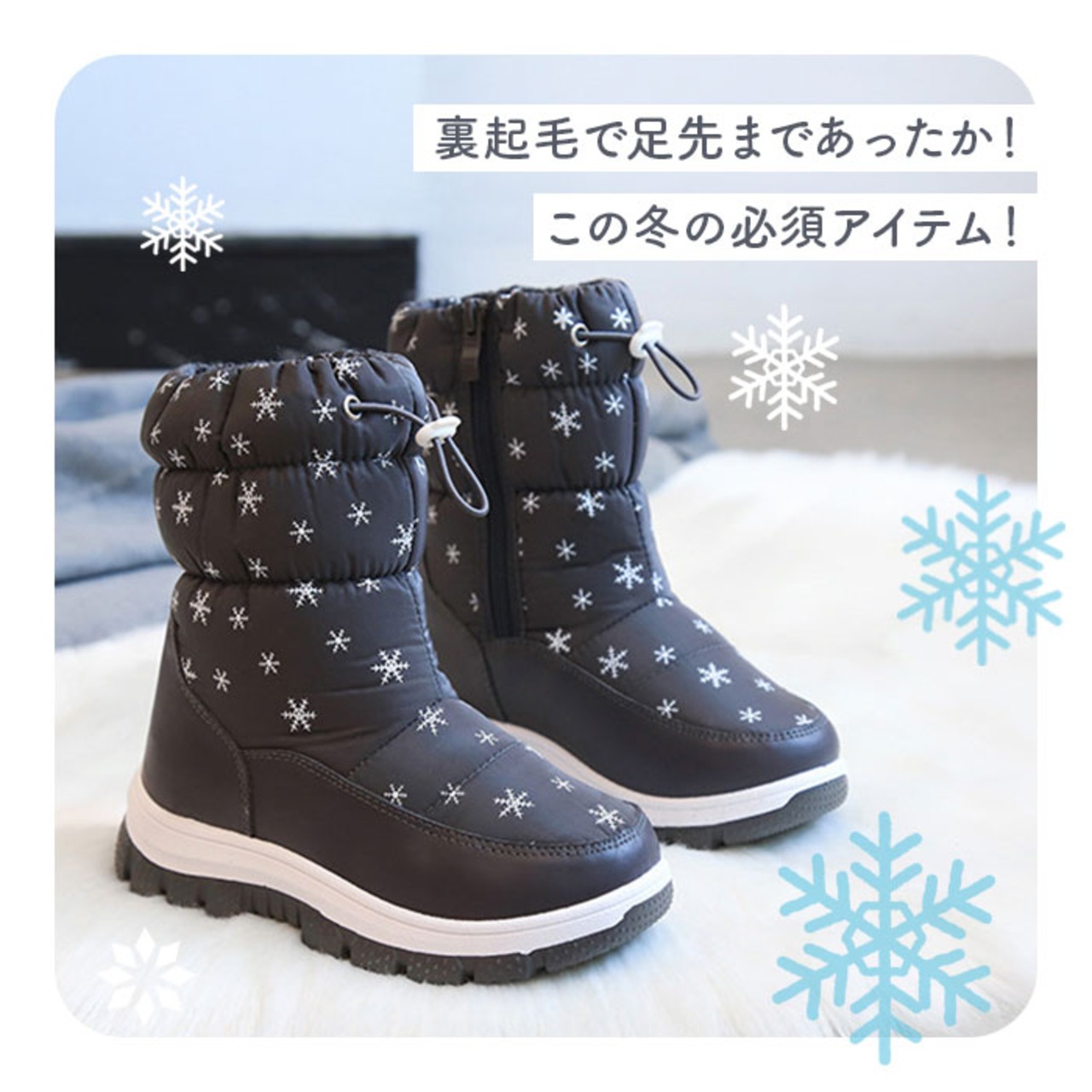 ・裏起毛で足先まであったか♪滑りにくく、足元をサポート。スノーブーツ が登場。