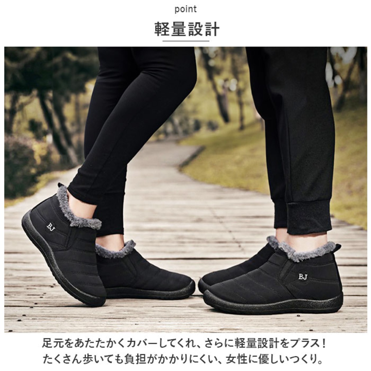 ・足元をあたたかくカバーしてくれ、さらに軽量設計をプラス!たくさん歩いても負担がかかりにくい、女性に優しいつくり。