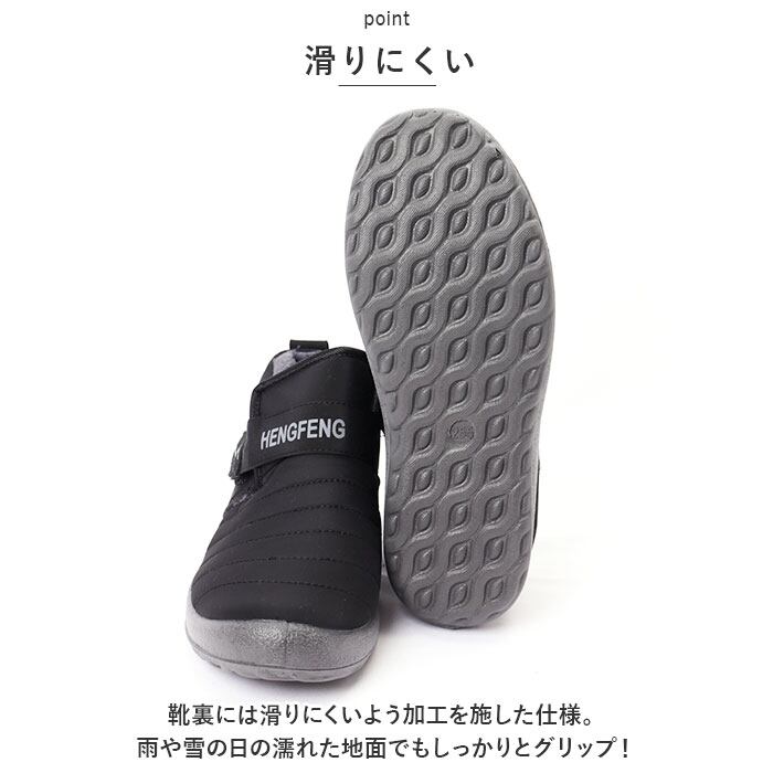 ・靴裏には滑りにくいよう加工を施した仕様。雨や雪の日の濡れた地面でもしっかりとグリップ!