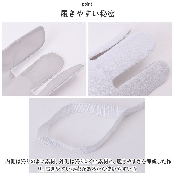 ・内側は滑りのよい素材、外側は滑りにくい素材と、履きやすさを考慮した作り。履きやすい秘密があるから使いやすい◎