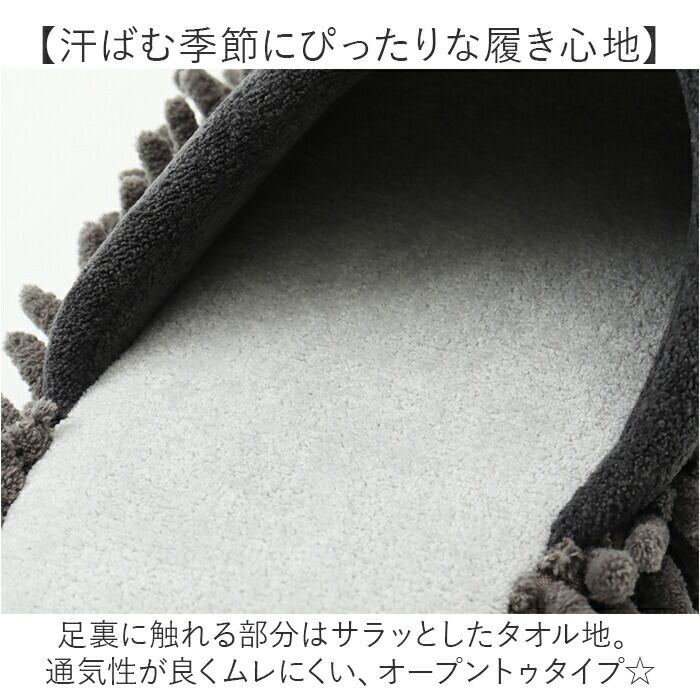 ・足裏に触れる部分はサラッとしたタオル地。通気性が良くムレにくい、オープントゥタイプ☆