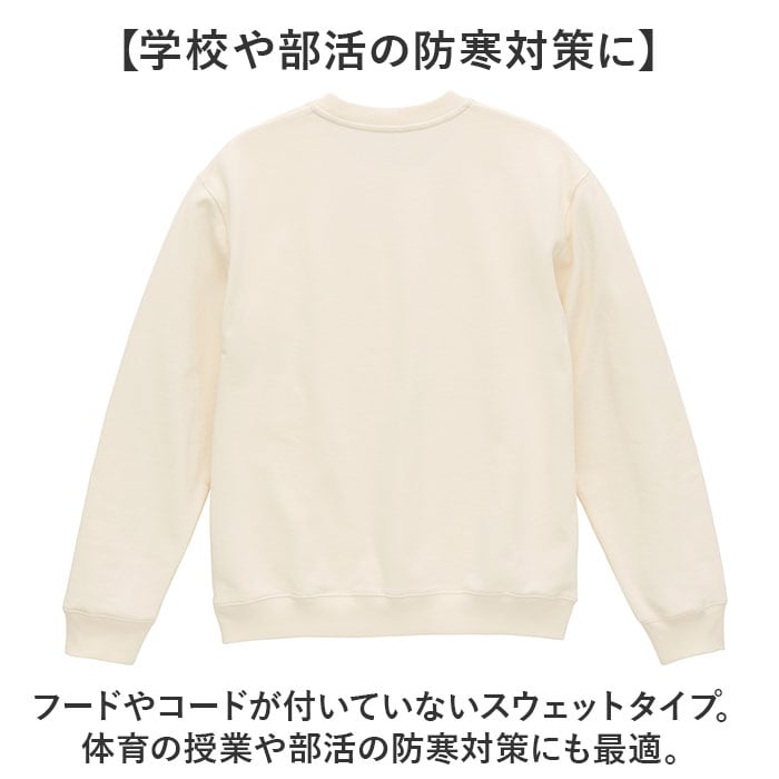 ・フードやコードが付いていないスウェットタイプ。体育の授業や部活の防寒対策にも最適。
