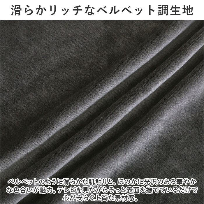 ・ベルベットのように滑らかな肌触りと、ほのかに光沢のある華やかな色合いが魅力。テレビを見ながらそっと表面を撫でているだけで心が安らぐ上質な素材感。