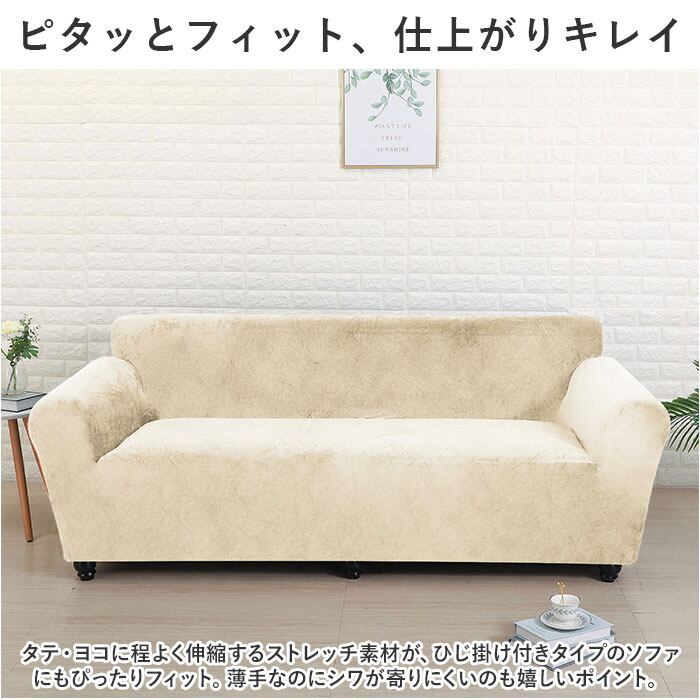 ・ポリウレタン配合の生地がぐーんと伸びて、ソファ全体をすっぽりカバーするので、汚れや傷が目立つソファも気軽に着せ替えが可能♪