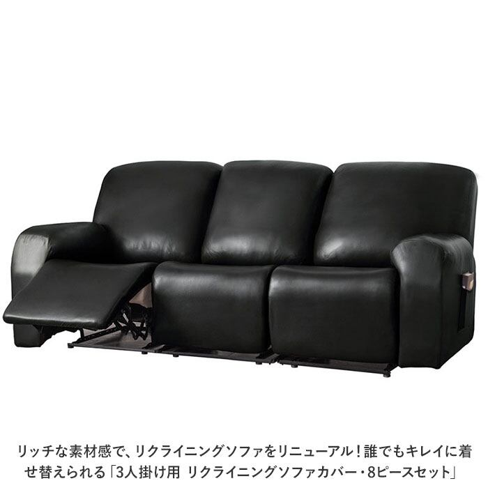 ・リッチな素材感で、リクライニングソファをリニューアル!誰でもキレイに着せ替えられる「3人掛け用 リクライニングソファカバー・8ピースセット」