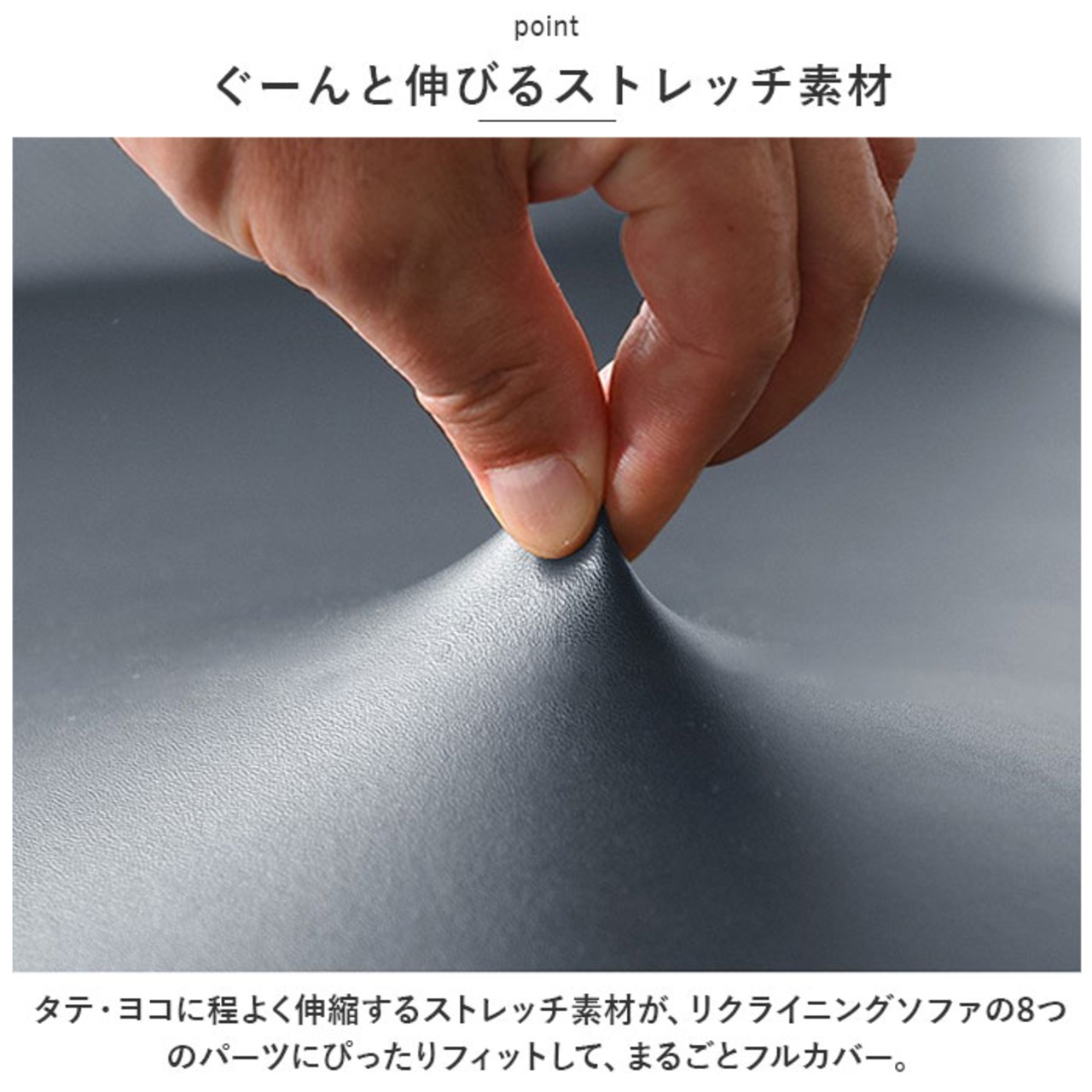 ・タテ・ヨコに程よく伸縮するストレッチ素材が、リクライニングソファの8つのパーツにぴったりフィットして、まるごとフルカバー。