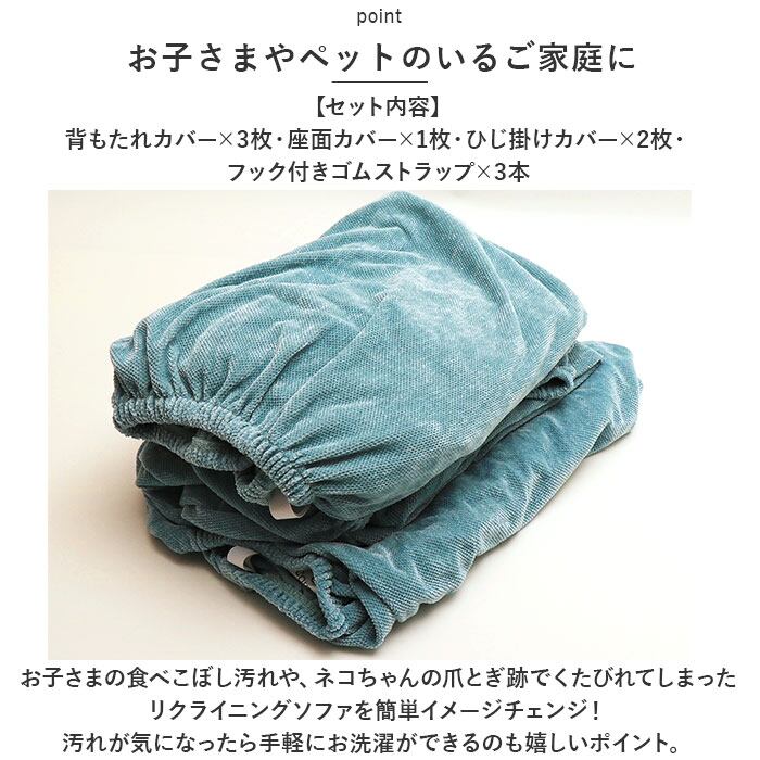 ・お子さまの食べこぼし汚れや、ネコちゃんの爪とぎ跡でくたびれてしまったリクライニングソファを簡単イメージチェンジ!汚れが気になったら手軽にお洗濯ができるのも嬉しいポイント。