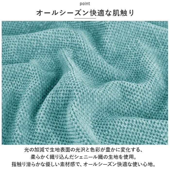 ・光の加減で生地表面の光沢と色彩が豊かに変化する、柔らかく織り込んだシェニール織の生地を使用。指触り滑らかな優しい素材感で、オールシーズン快適な使い心地。