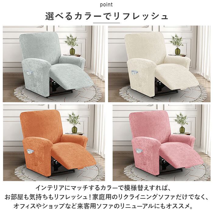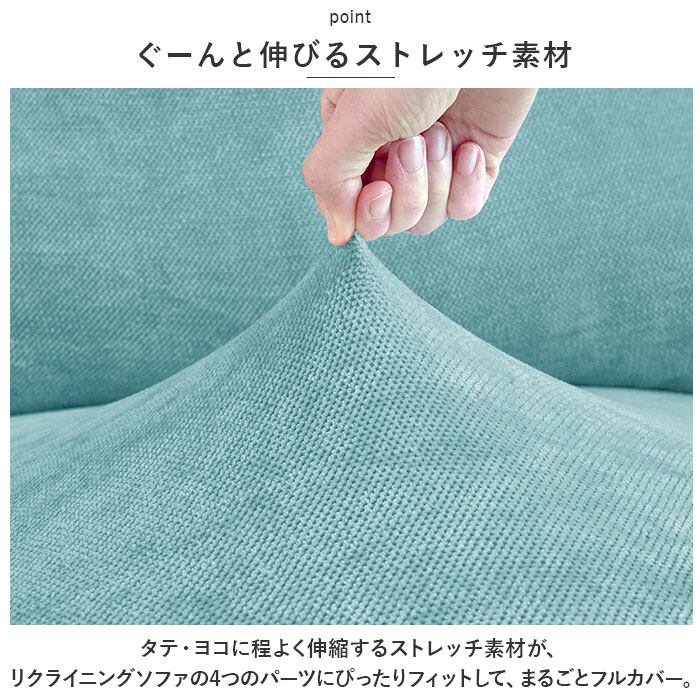 ・タテ・ヨコに程よく伸縮するストレッチ素材が、リクライニングソファの4つのパーツにぴったりフィットして、まるごとフルカバー。