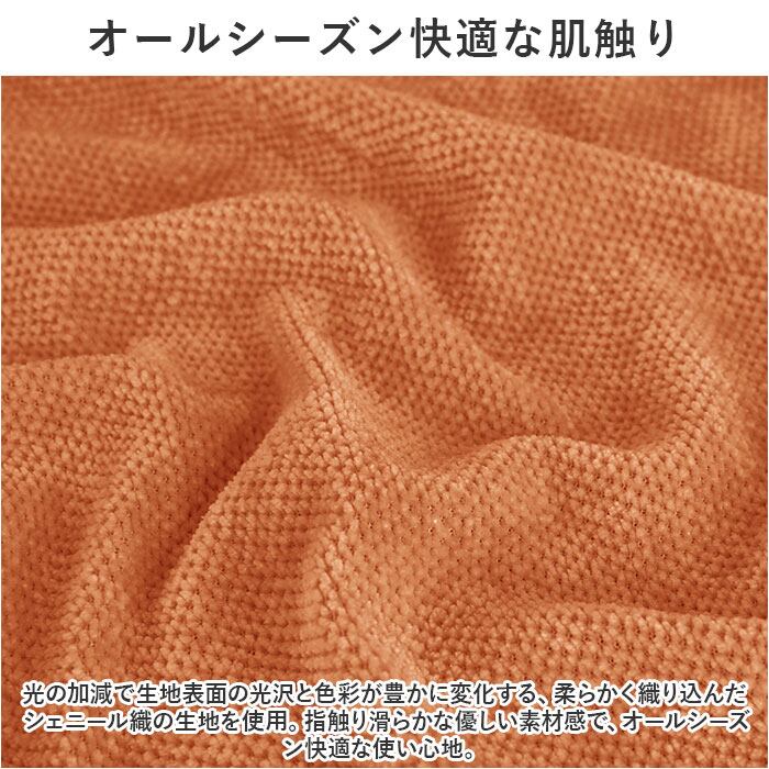 ・光の加減で生地表面の光沢と色彩が豊かに変化する、柔らかく織り込んだシェニール織の生地を使用。指触り滑らかな優しい素材感で、オールシーズン快適な使い心地。