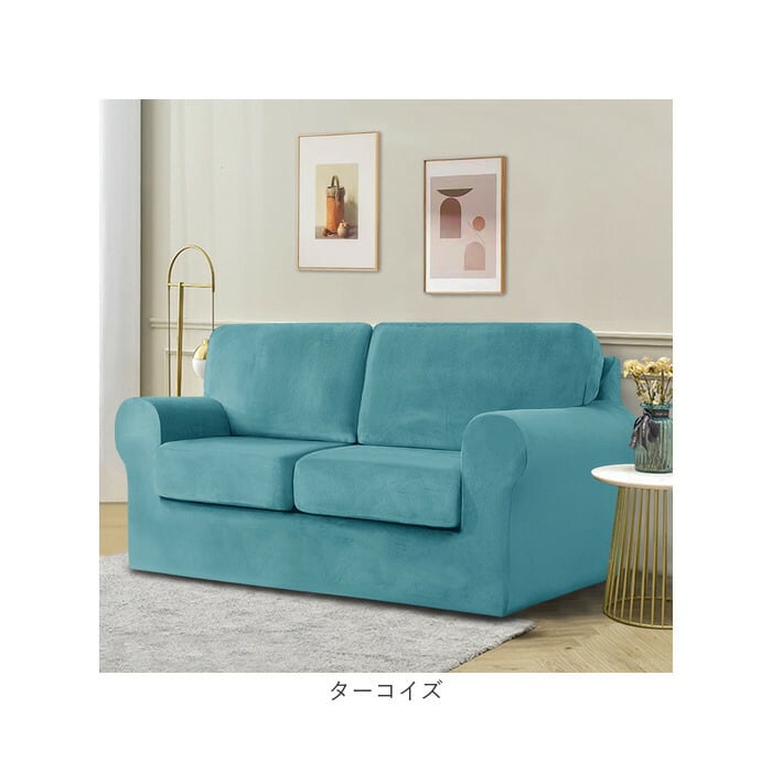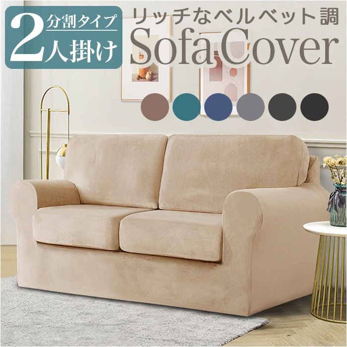 ベルベット調ソファーカバー 肘付き 2人掛け pmysofa23
