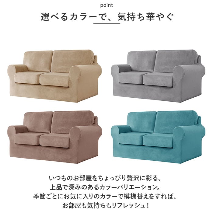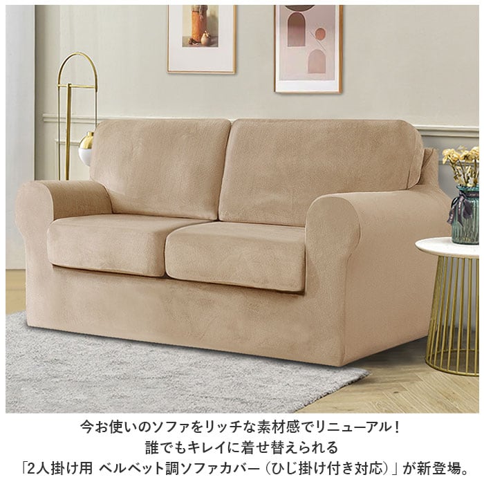 ・今お使いのソファをリッチな素材感でリニューアル!誰でもキレイに着せ替えられる「2人掛け用 ベルベット調ソファカバー(ひじ掛け付き対応)」が新登場。