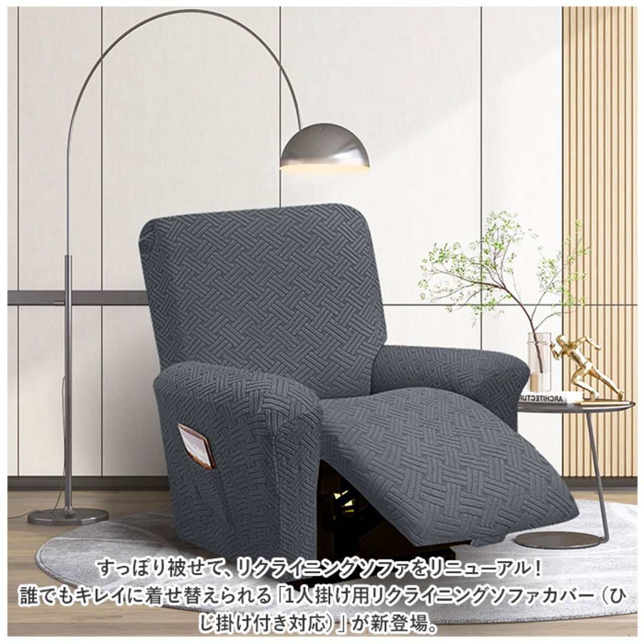 ・すっぽり被せて、リクライニングソファをリニューアル!誰でもキレイに着せ替えられる「1人掛け用リクライニングソファカバー(ひじ掛け付き対応)」が新登場。
