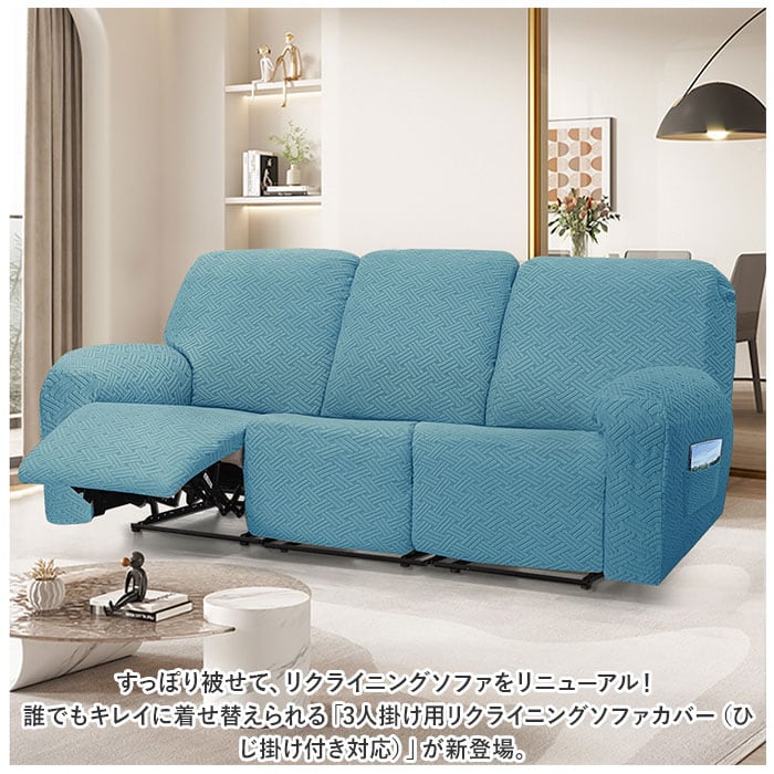 ・すっぽり被せて、リクライニングソファをリニューアル!誰でもキレイに着せ替えられる「3人掛け用リクライニングソファカバー(ひじ掛け付き対応)」が新登場。