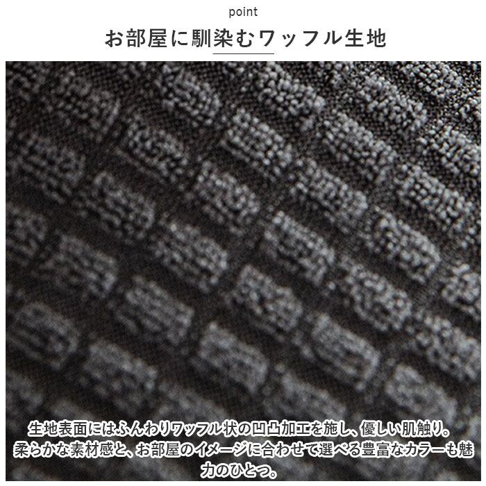 ・生地表面にはふんわりワッフル状の凹凸加工を施し、優しい肌触り。柔らかな素材感と、お部屋のイメージに合わせて選べる豊富なカラーも魅力のひとつ。