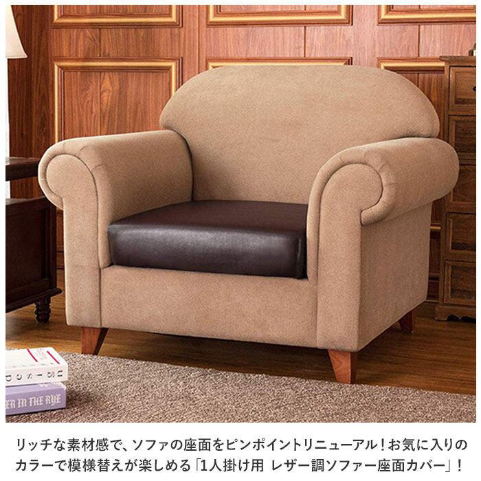 ・リッチな素材感で、ソファの座面をピンポイントリニューアル!お気に入りのカラーで模様替えが楽しめる「1人掛け用 レザー調ソファー座面カバー」!