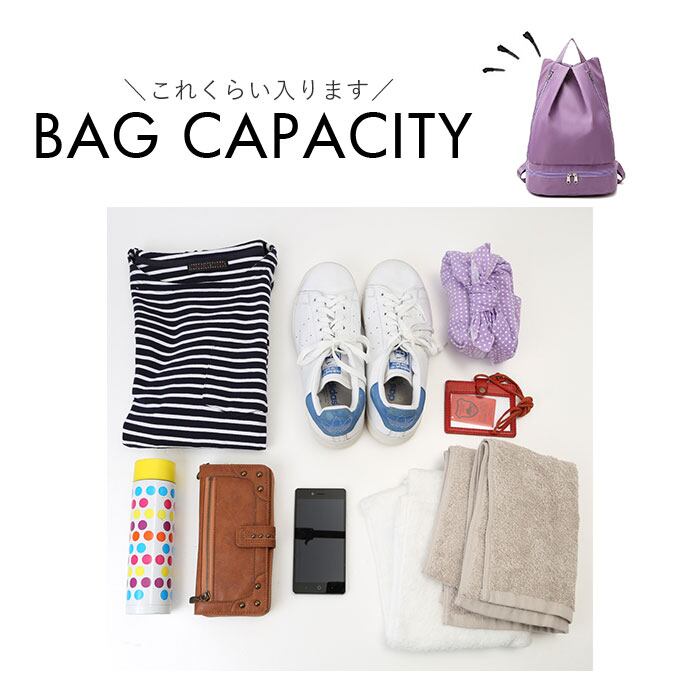 ・プールや海水浴などのアウトドアレジャーはもちろん、フィットネスジムや温泉用に。荷物が多くなりがちな旅行用など、様々なシーンや用途に大活躍!アクティブ女子にオススメ♪