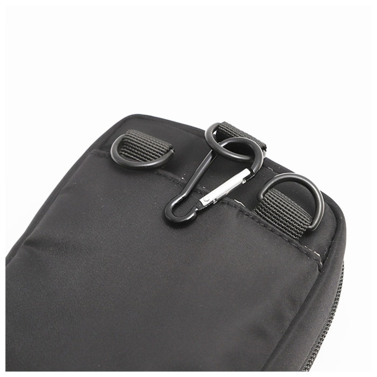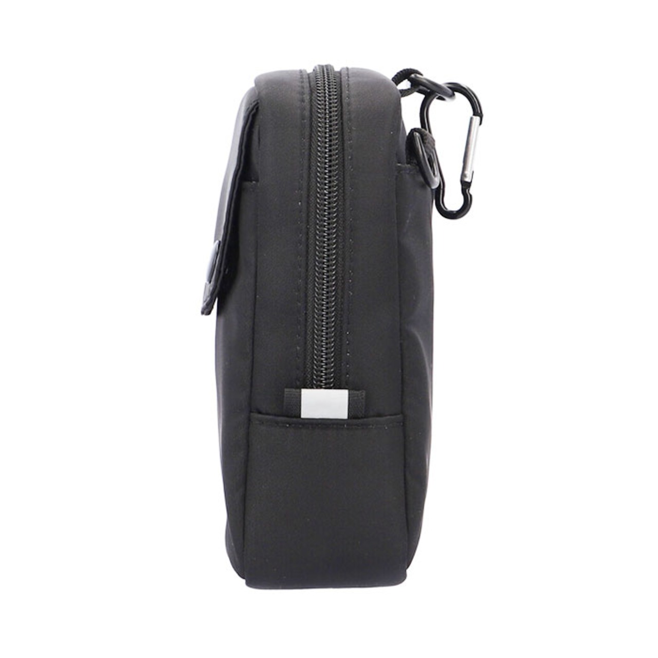 ・また背面にはカード類が入るオープンポケット×1とカラビナ付き。カラビナをズボンのベルトループに取り付ければ、ウエストポーチとしても使える!