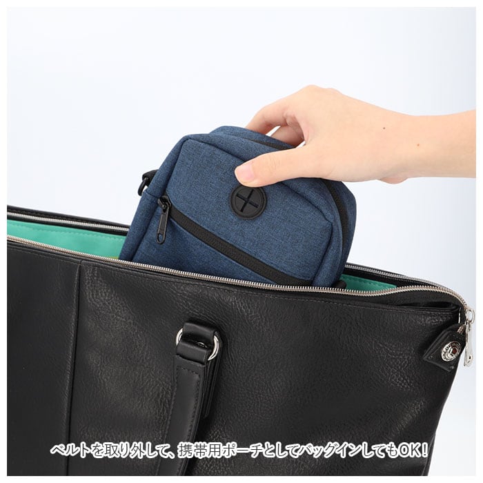 ・付属のショルダーベルトでちょこんと肩掛けスタイルにできるのもちろん、ベルトを取り外して、携帯用ポーチとしてバッグインしてもOK!