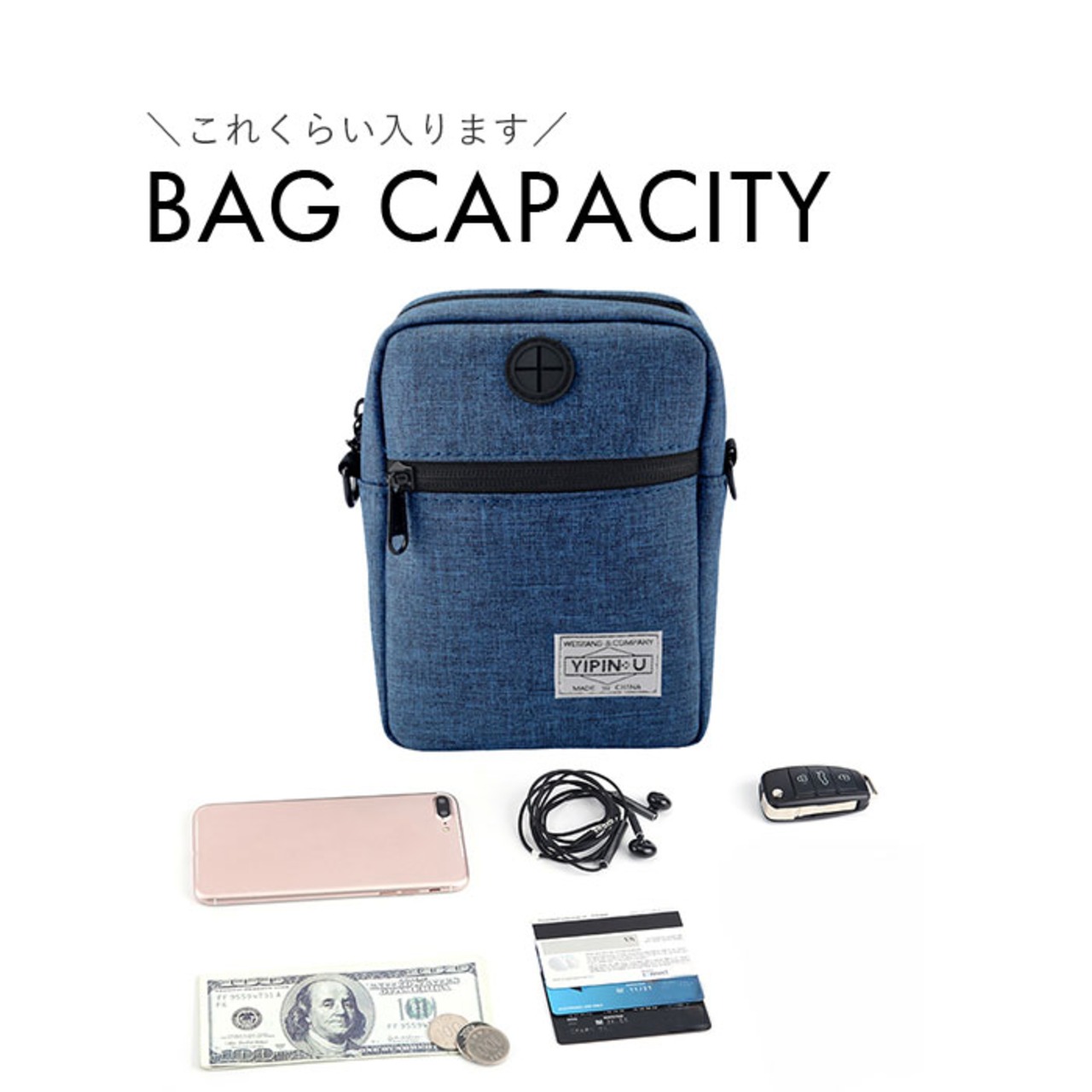 ・メインルーム開口部は、収納した小物がこぼれ落ちる心配のないダブルファスナーを採用し、プライバシー面でも安心のつくり。
