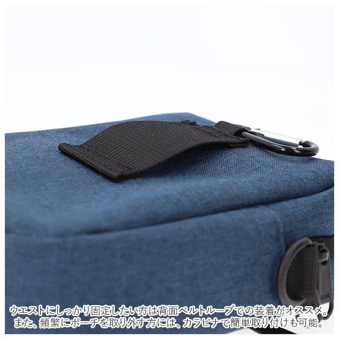 ・ウエストにしっかり固定したい方は背面ベルトループでの装着がオススメ。また、頻繁にポーチを取り外す方には、カラビナで簡単取り付けも可能。