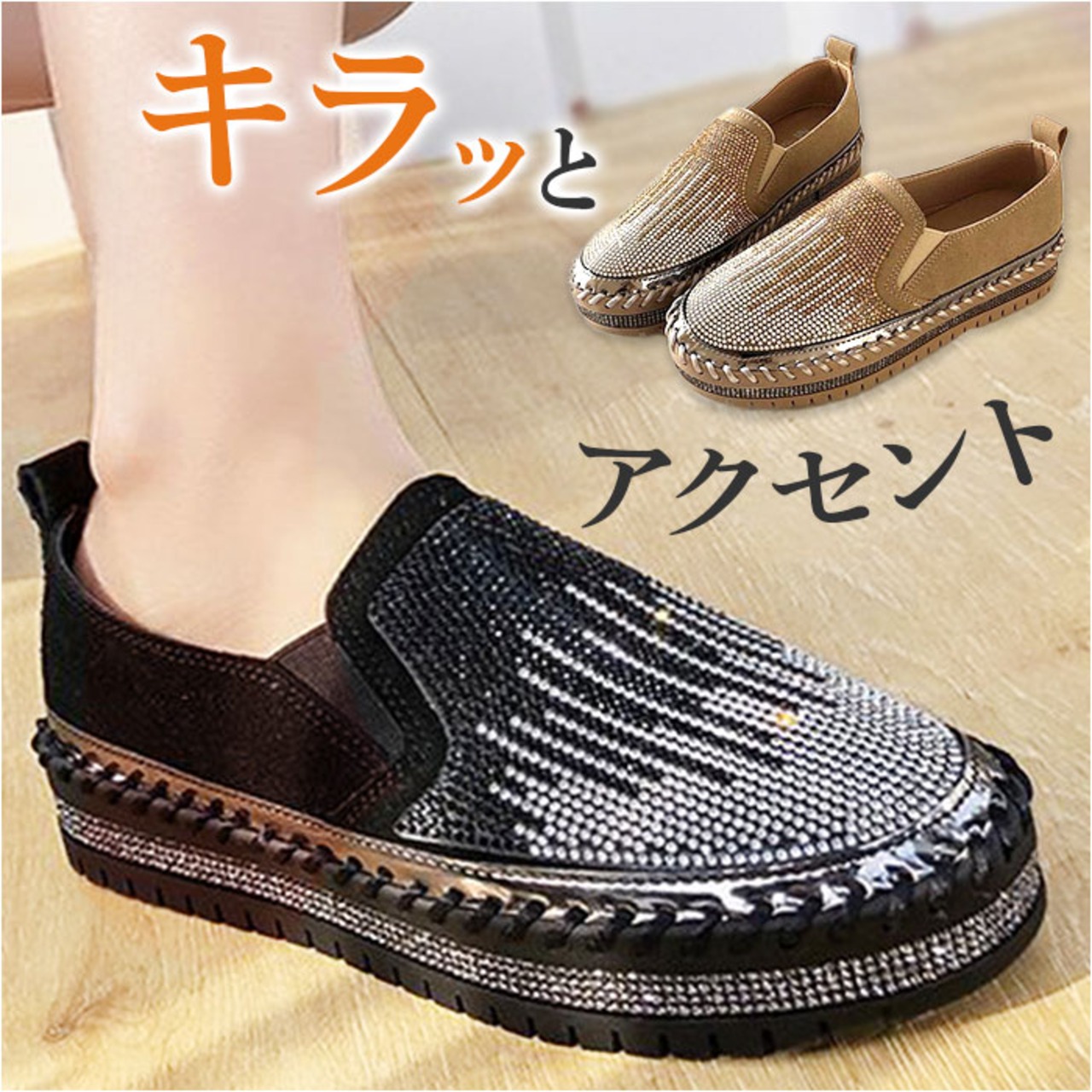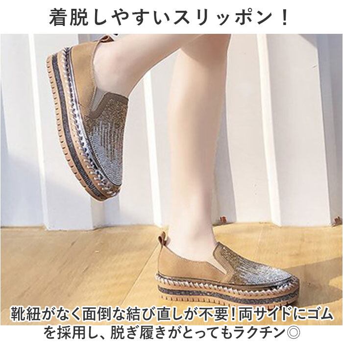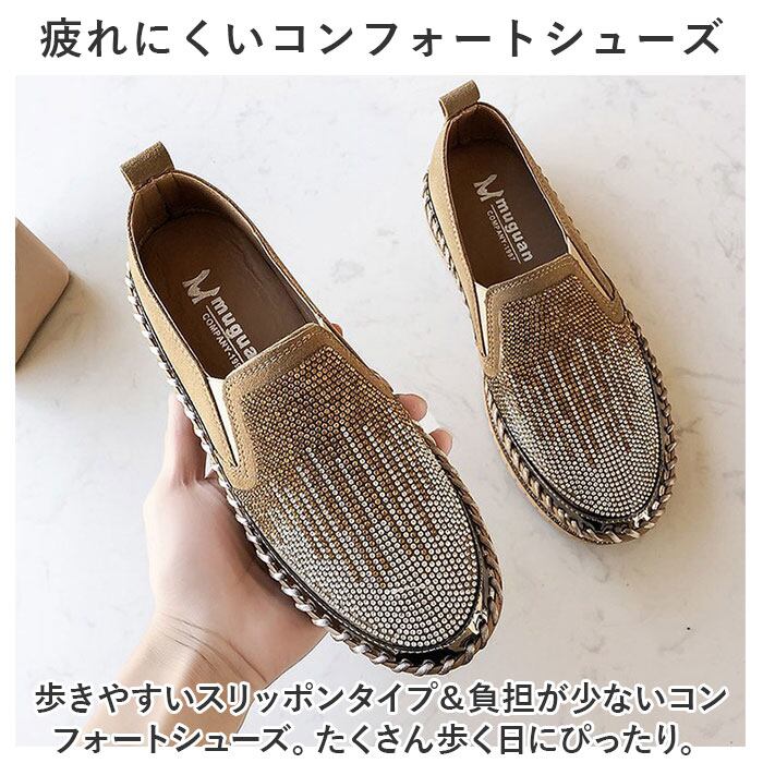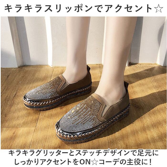・コーデのアクセントに☆キラキラなコンフォートシューズ!レディース スリッポンが登場。