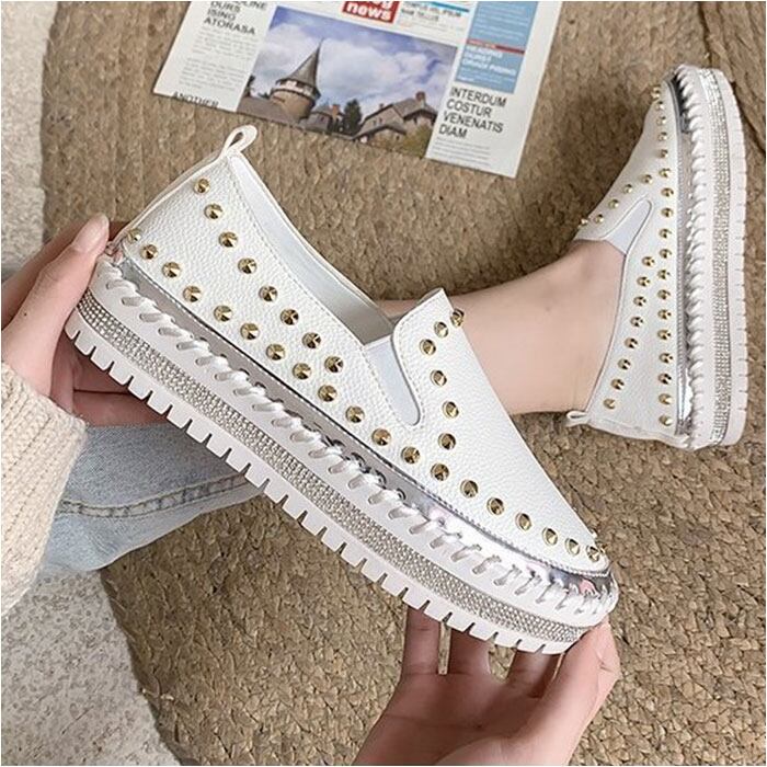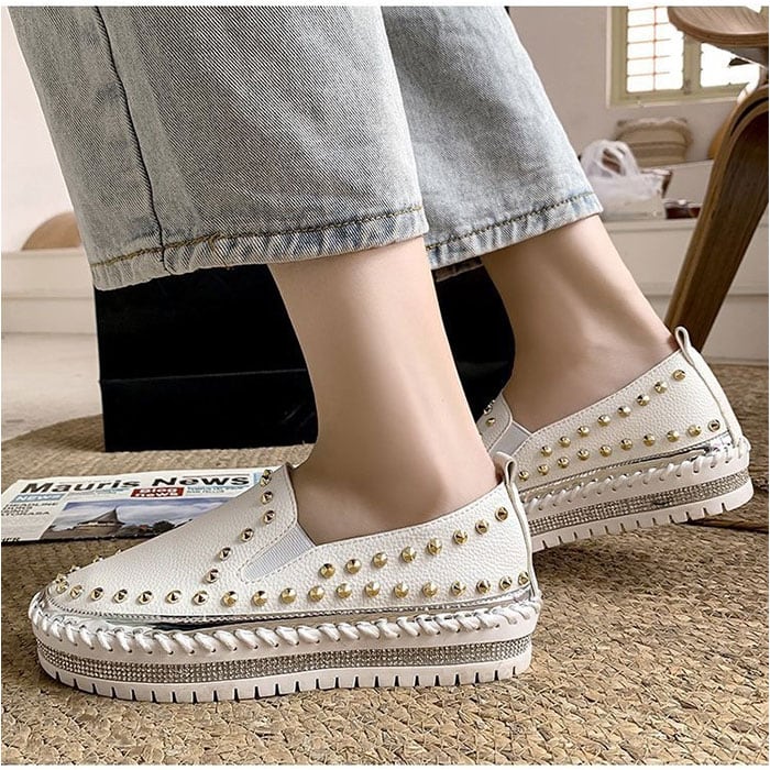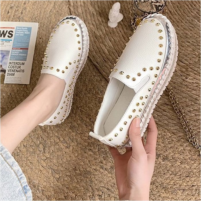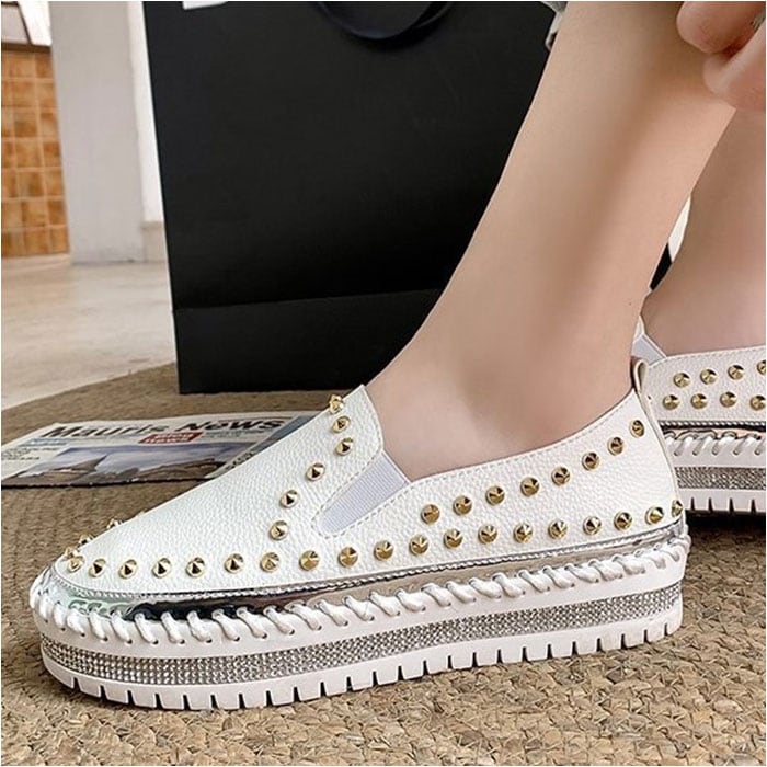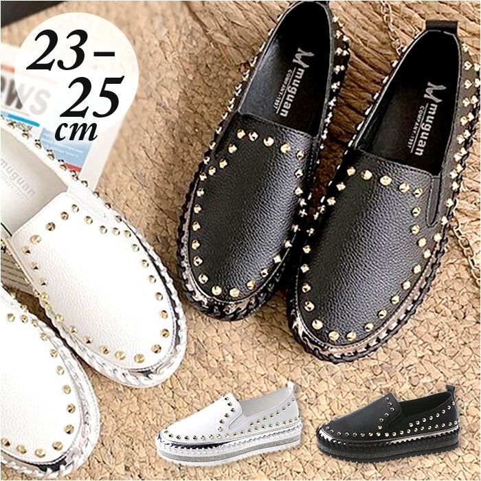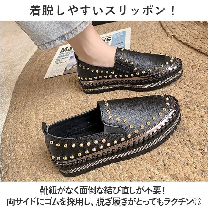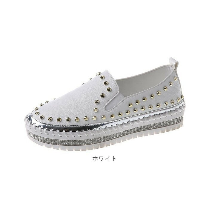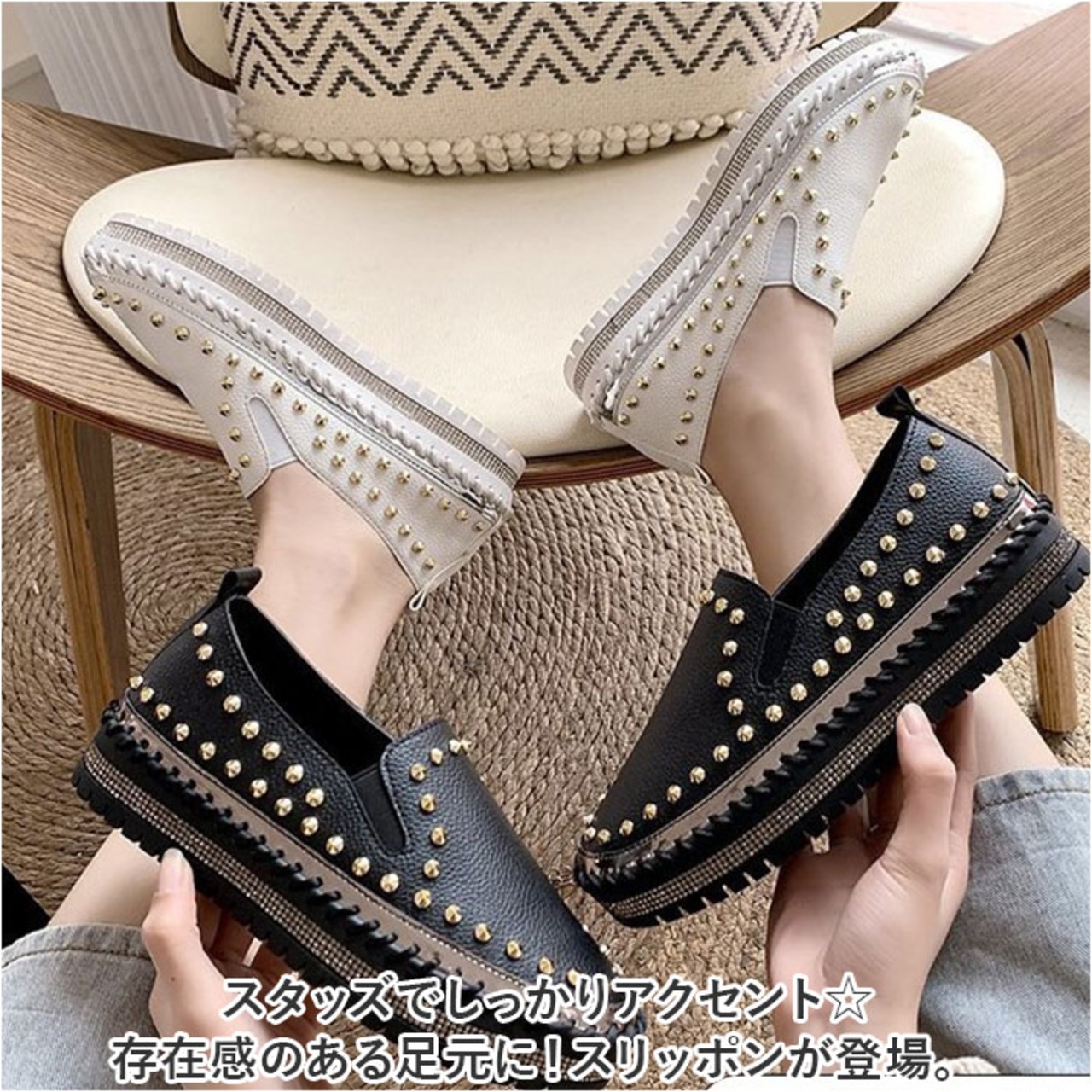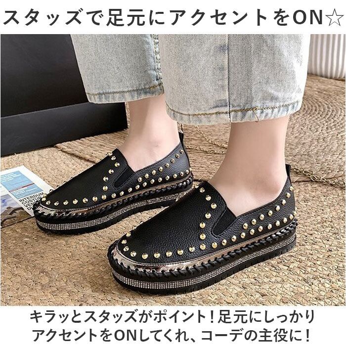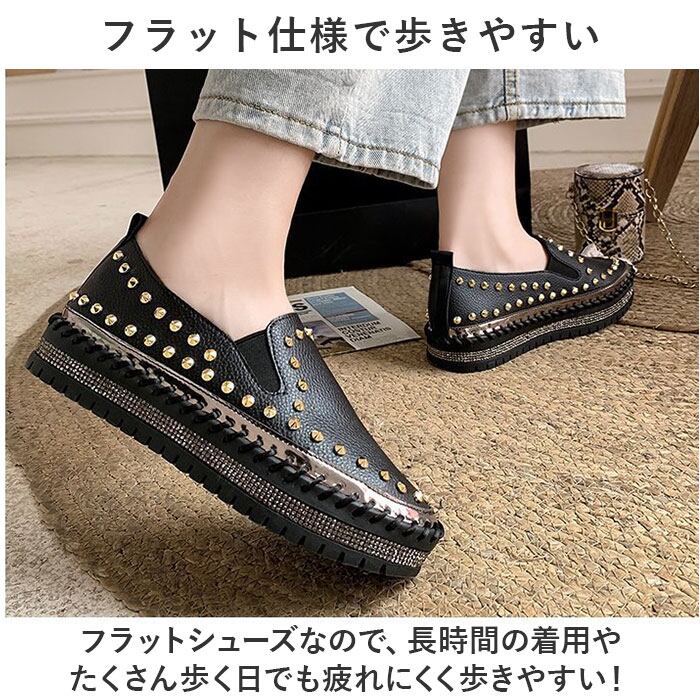 大人 厚底 スリッポン 通販 スニーカー フラットシューズ 靴 くつ シューズ おしゃれ レディース スタッズ ローヒール ローカット ペタンコ 紐なし レザー 履きやすい 歩きやすい カジュアル 通勤 通学 お出かけ デート かわいい 婦人靴 スリップオン