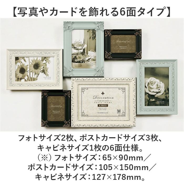 ・フォトサイズ2枚、ポストカードサイズ3枚、キャビネサイズ1枚の6面仕様。