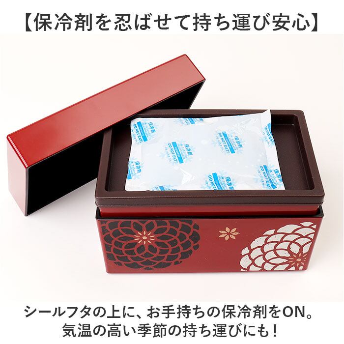 ・シールフタの上に、お手持ちの保冷剤をON。気温の高い季節の持ち運びにも!
