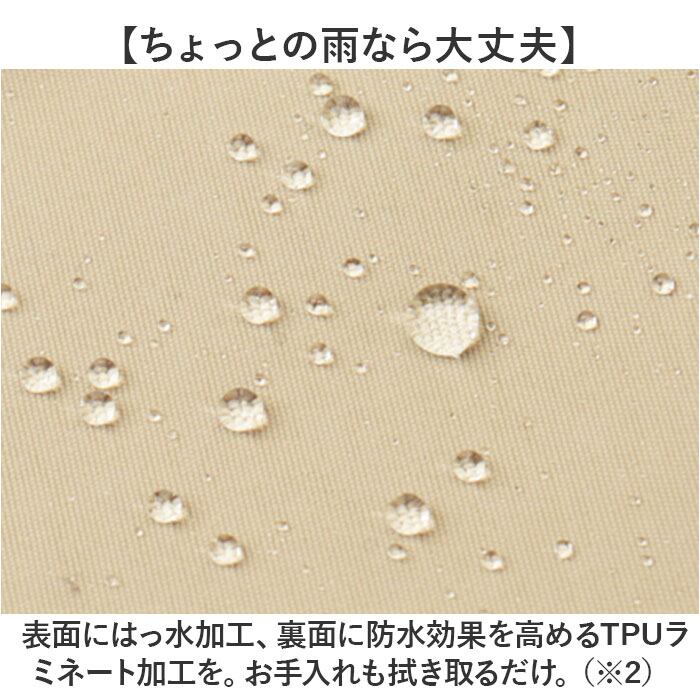 ・表面にはっ水加工、裏面に防水効果を高めるTPUラミネート加工を。お手入れも拭き取るだけ。