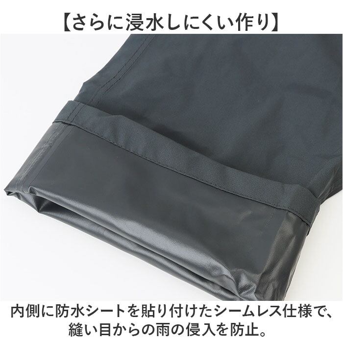 ・内側に防水シートを貼り付けたシームレス仕様で、縫い目からの雨の侵入を防止。