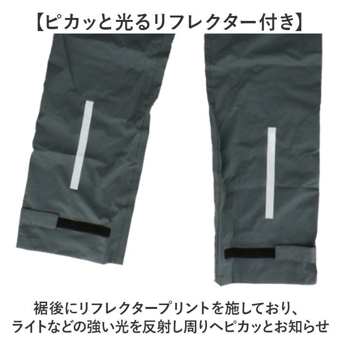 ・裾後にリフレクタープリントを施しており、ライトなどの強い光を反射し周りへピカッとお知らせ