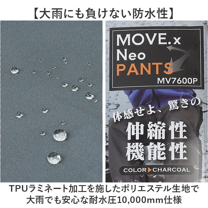 ・防水・浸透・ストレッチ性に優れ快適に穿ける♪MOVE.x neoレインパンツ