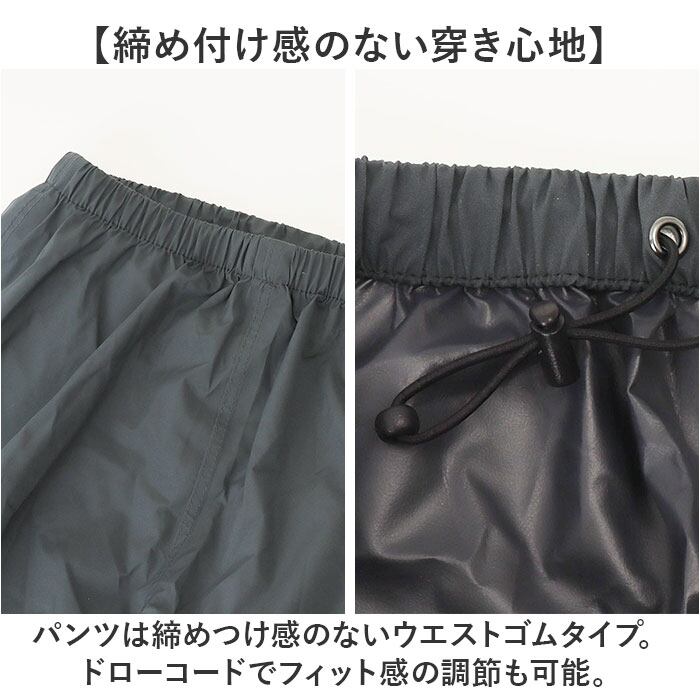 ・パンツは締めつけ感のないウエストゴムタイプ。ドローコードでフィット感の調節も可能。