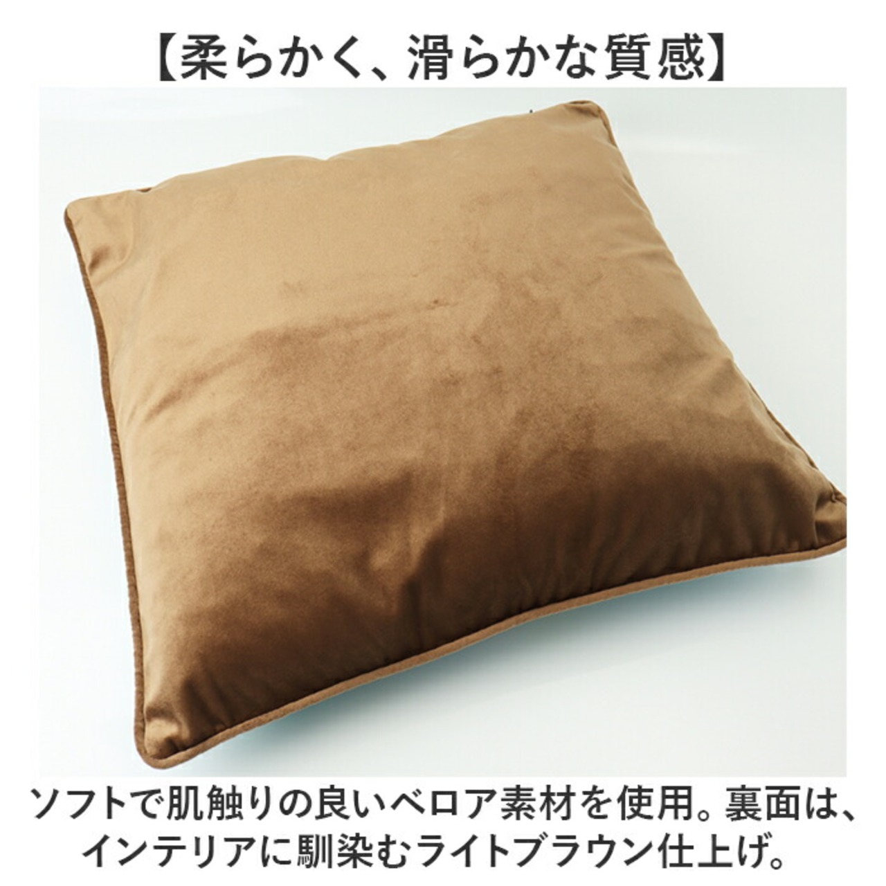 ・ソフトで肌触りの良いベロア素材を使用。裏面は、インテリアに馴染むライトブラウン仕上げ。
