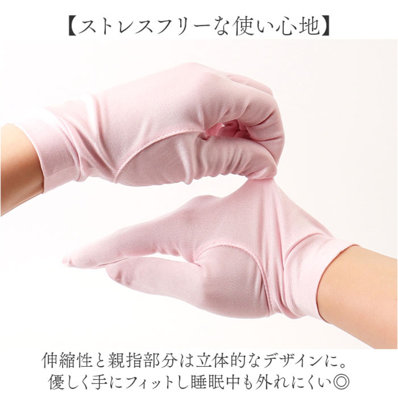 ・伸縮性と親指部分は立体的なデザインに。優しく手にフィットし睡眠中も外れにくい◎