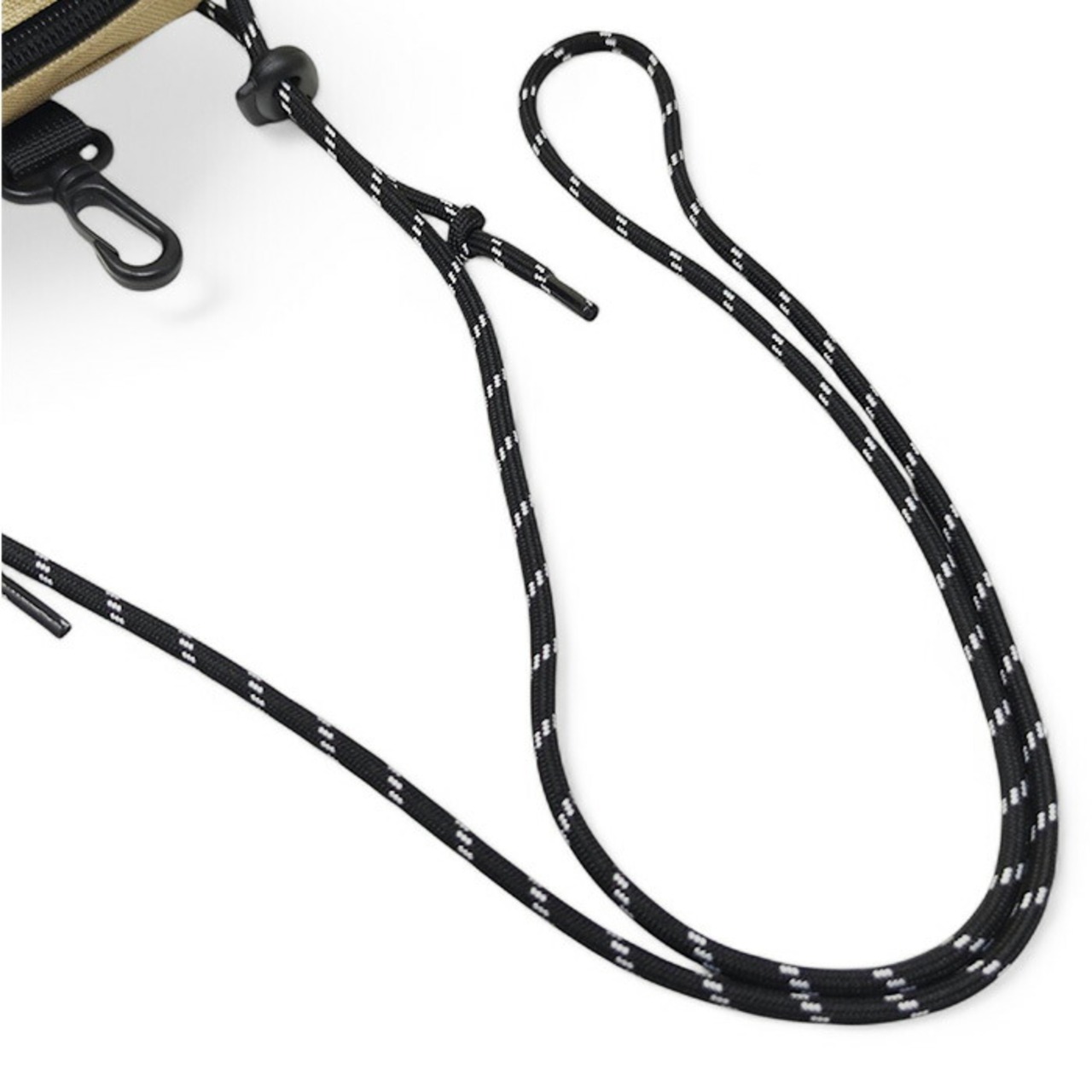 ・ショルダーコードの長さを調節して、斜め掛け。フックを使ってベルトループなどに装着も!