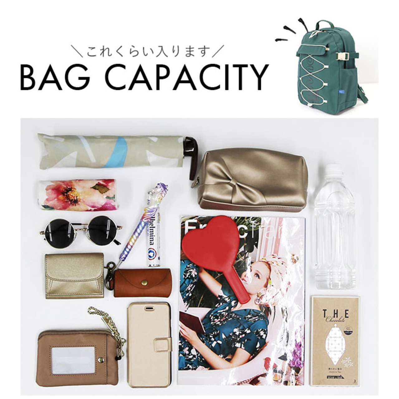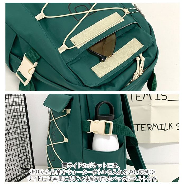 ・両サイドのポケットには、折りたたみ傘やウォーターボトルを入れるのに便利◎