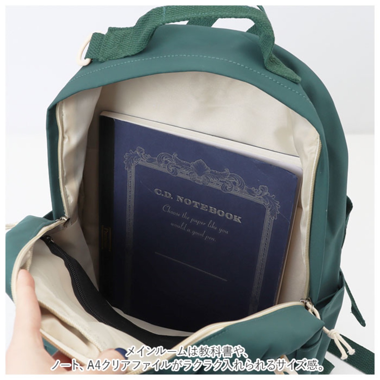 ・メインルームは教科書や、ノート、A4クリアファイルがラクラク入れられるサイズ感。