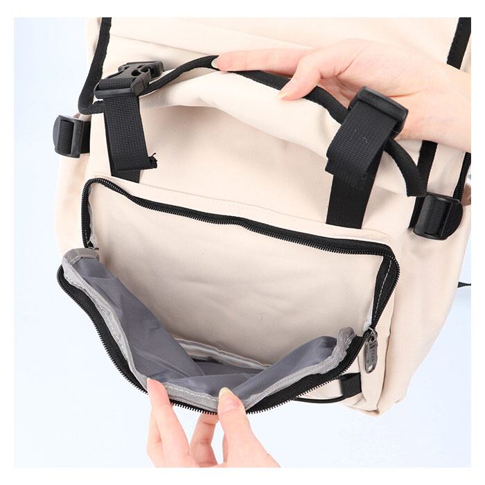 ・前面に幅広のファスナーポケット付き。