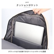 ・タブレットなどを収納できるクッションポケットも装備。