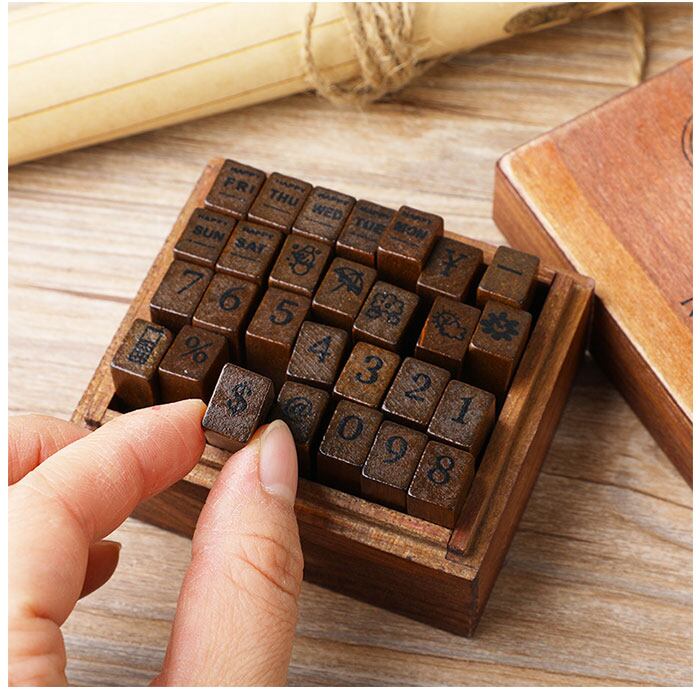 ・アンティーク感たっぷり♪木箱に入ったアルファベットスタンプセットが登場。