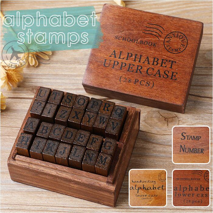 スタンプ アルファベット 通販 スタンプセット はんこ ハンコ ミニスタンプ 英字 小文字 木箱 木製 記号 デザインスタンプ おしゃれ シンプル イニシャル 名前 なまえ レトロ アンティーク 文具 文房具