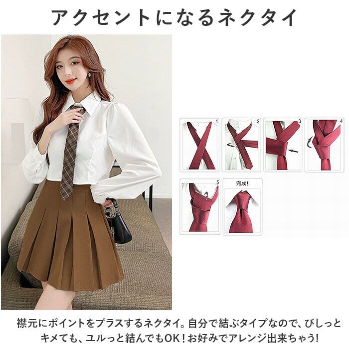 ・襟元にポイントをプラスするネクタイ。自分で結ぶタイプなので、びしっとキメても、ユルっと結んでもOK!お好みでアレンジ出来ちゃうのが嬉しいポイント。